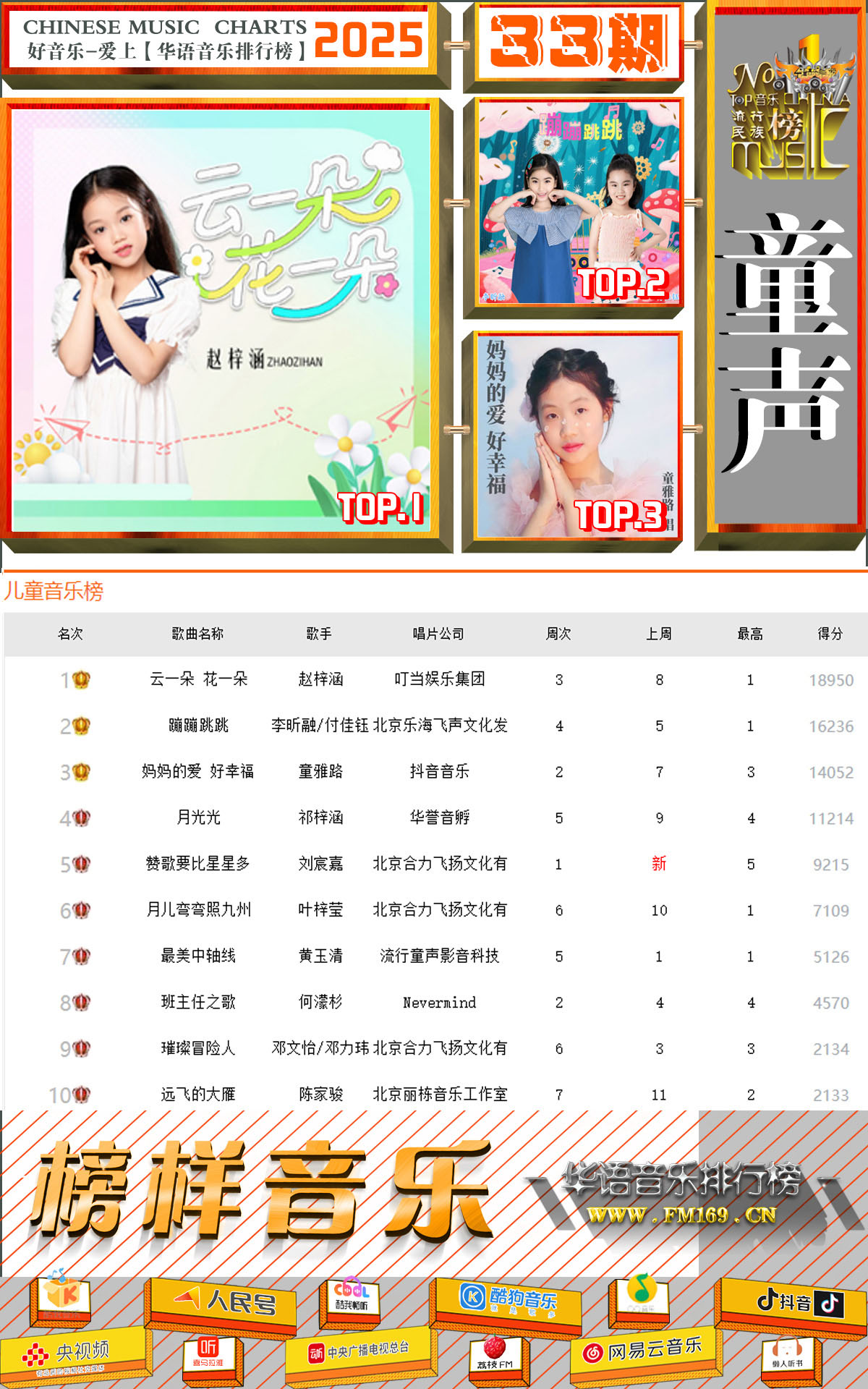 华语音乐排行榜【民歌总榜】第641期2025年第33期榜单排名