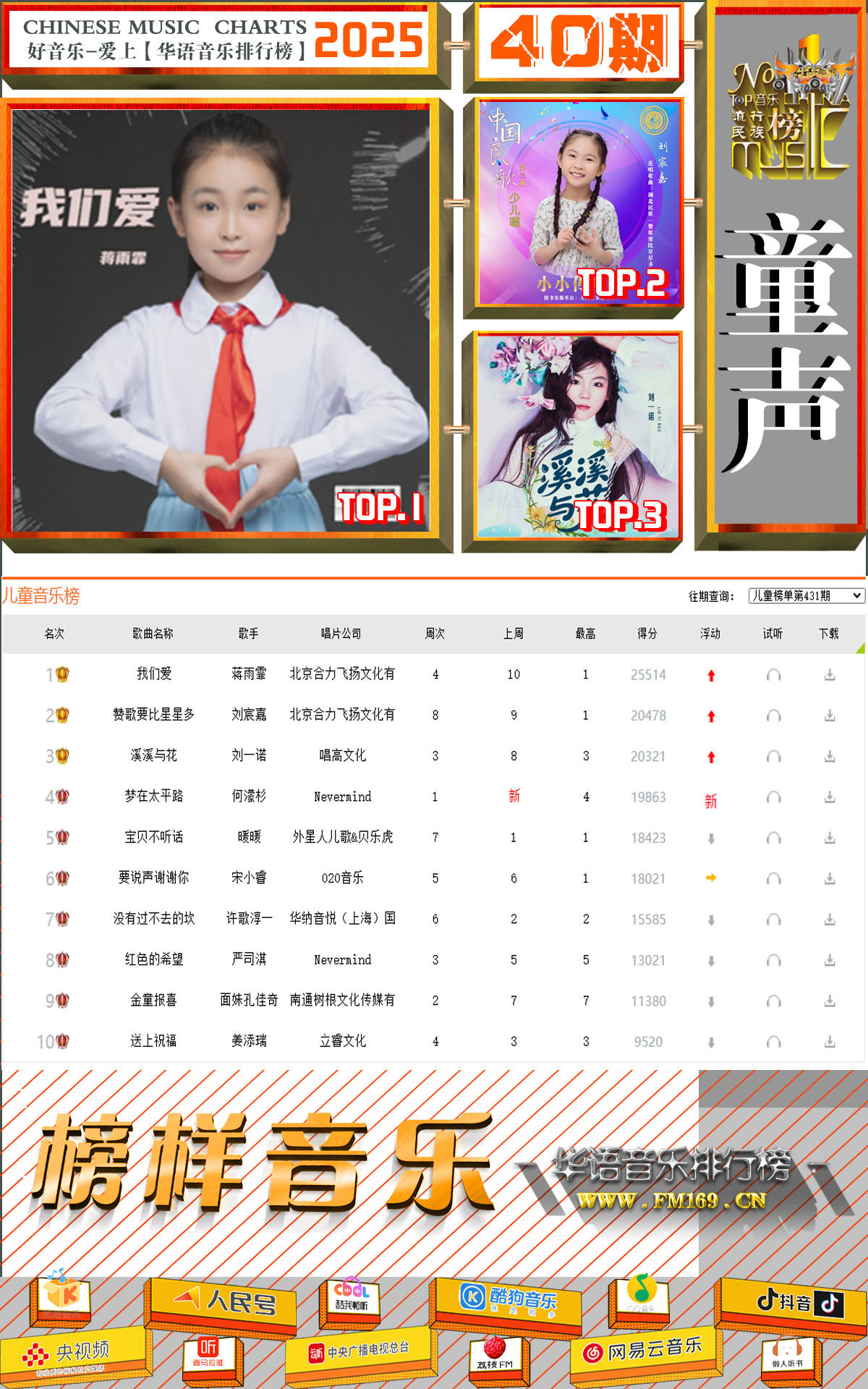 华语音乐排行榜【民歌总榜】第648期2025年第40期榜单排名