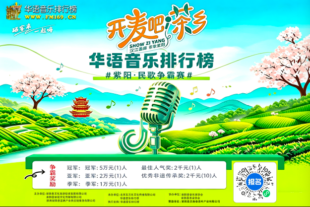 山高水长,歌韵悠长;茶香四溢,非遗流芳。2026华语音乐排行榜·紫阳民歌争霸赛的大幕已启,一场集音乐盛宴、文化体验、文旅狂欢于一体的盛会正在秦巴腹地精彩上演,诚邀八方来客共赴茶乡之约,聆听千年非遗的时代新声,共赏山水人文的紫阳华章!